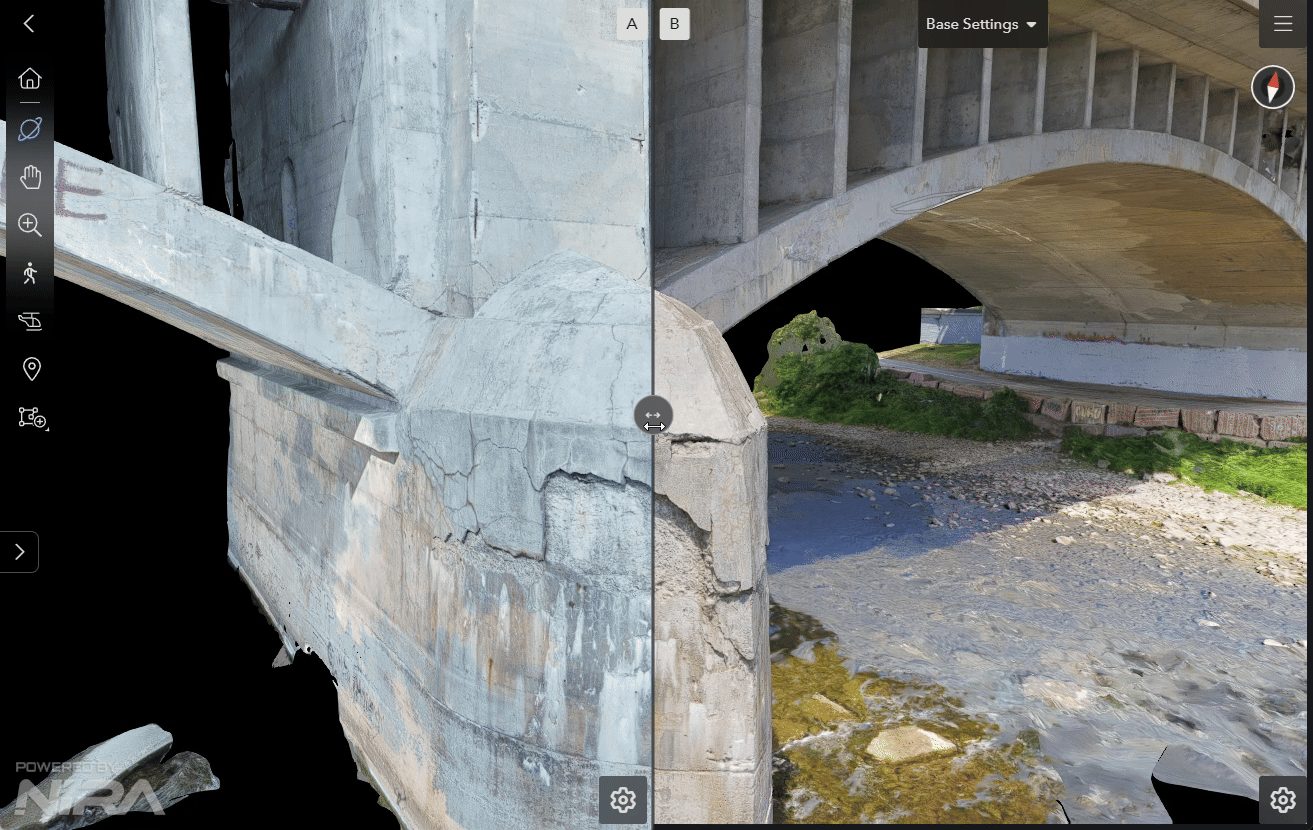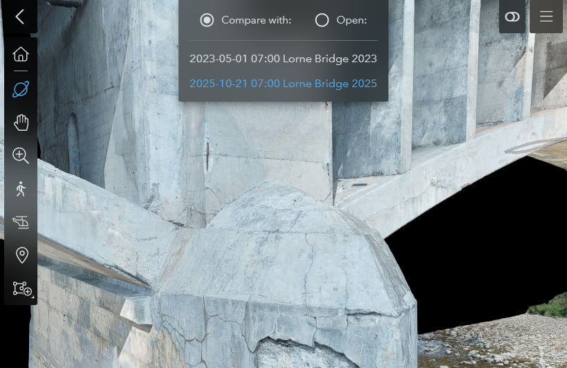 Comparing a bridge captured on May 01, 2023 with the same bridge captured on October 21, 2025