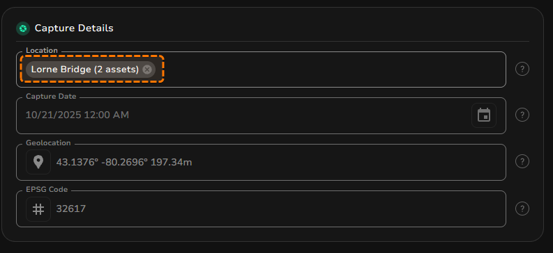 To use the side-by-side Compare feature, you’ll first need to assign one or more assets a Location Tag. A Location Tag can be any name you choose, but we recommend using the name of the site (e.g., Golden Gate Bridge, Eiffel Tower, 14th Street Building).