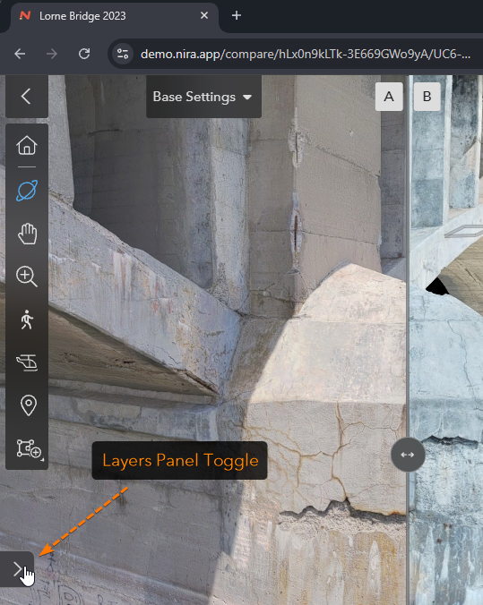 Assets must share the same georeferenced EPSG code to compare them with one another. If an asset was not properly georeferenced (for example, indoor room captures), you can still use the Compare feature, but you may need to align the models using third-party desktop software before uploading to Nira.